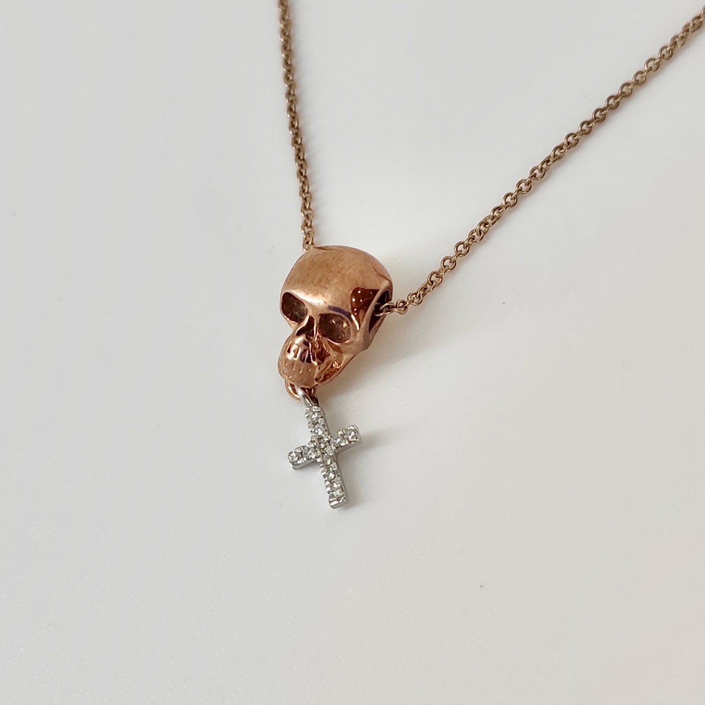 Κολιέ Very Gavello κατασκευασμένο από ροζ Χρυσό 9 καρατίων, διακοσμημένο με Μπριγιάν . Συνοδευέται από χρυσή αλυσίδα 9 καρατίων.