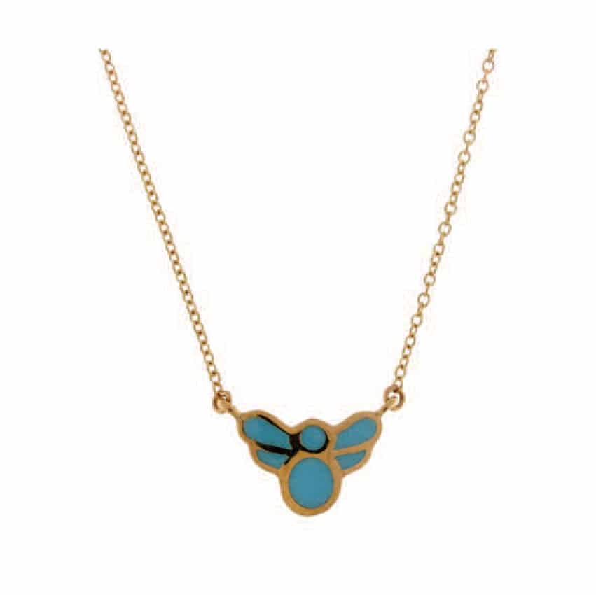 Buy It NowΚολιέ Very Gavello με αλυσίδα της σειράς bee, κατασκευμασμένο από ροζ χρυσό 9 καρατίων, διακοσμημένο με τιρκουάζ essenza.