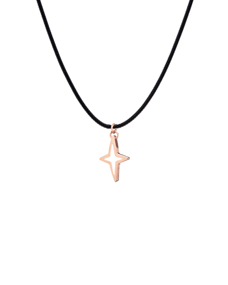 Κολιέ VERY GAVELLO από τη συλλογή Galaxy, κατασκευασμένο από ροζ χρυσό 9 καρατίων. Το μενταγιόν συνοδεύεται από υφασμάτινο κορδόνι με ρυθμιζόμενο length