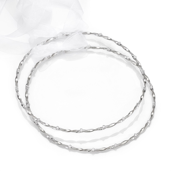 Εντυπωσιακά χειροποίητα στέφανα γάμου από τον ελληνικό οίκο Louvaris Αξίες, κατασκευασμένα από διπλή βάση σε αμμοβολή και γυαλιστερό, με διακριτικά κρύσταλλα swarovski.