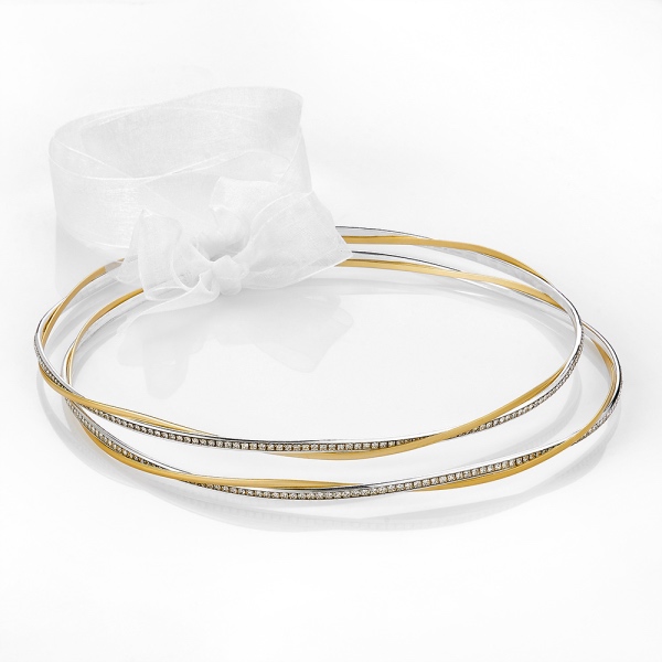 Εντυπωσιακά χειροποίητα ασημόχρυσα διβεργα στέφανα γάμου από τον ελληνικό οίκο Louvaris Αξίες, με στρας σε συνδυασμό με χρυσό ματ.