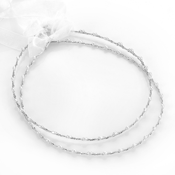 Εντυπωσιακά χειροποίητα στέφανα γάμου από τον ελληνικό οίκο Louvaris Αξίες, συνδυασμός κλασικού και μοντέρνου σχεδιασμού με μαργαριτάρια.