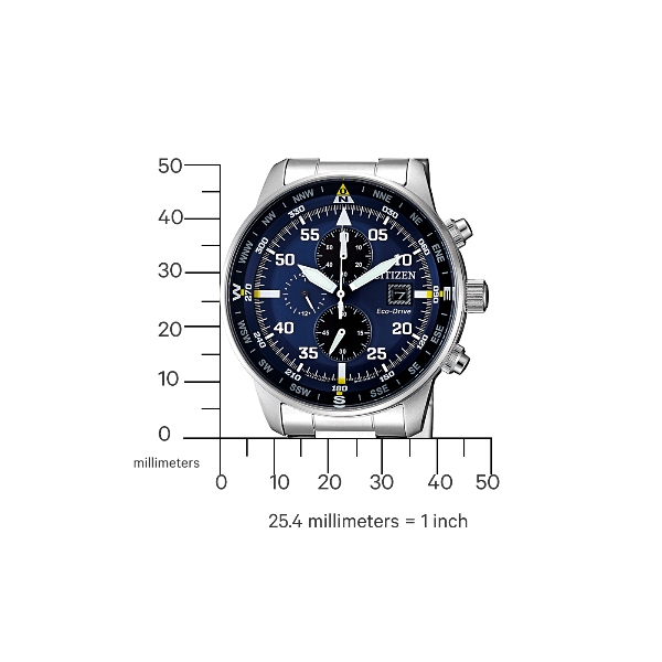 24 h display, Battery discharge indicator, date, 210 days, Eco-Drive, +/- 15 sec per month, Stopwatch: max.60 min,1/5 sec