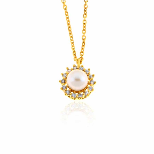 Κολιέ με αλυσίδα κατασκευασμένα από κίτρινο χρυσό 14 καρατίων διακοσμημένο με ζιργκον και λευκό μαργαριτάρι στο μοτίφ