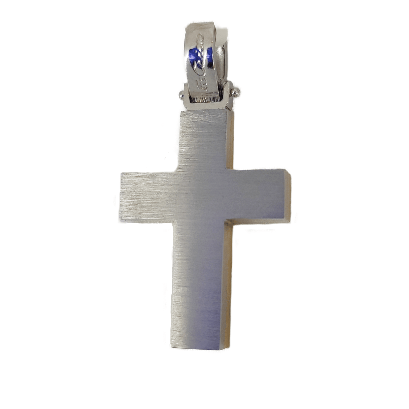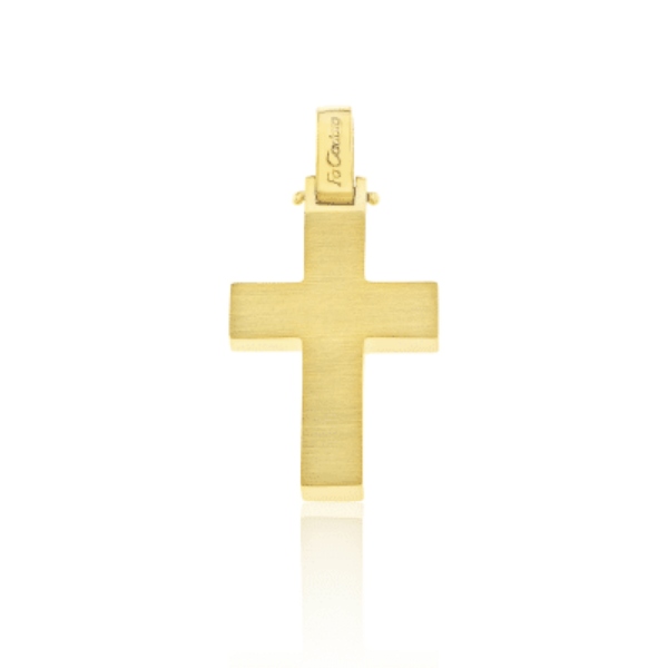 Σταυρός FaCod’oro διπλής όψης κατασκευασμένος από χρυσό 14 καρατίων στην μια πλευρά και λευκό χρυσό επίσης 14 καρατίων στην άλλη . Συνολικό βάρος 5,5 γραμμάρια