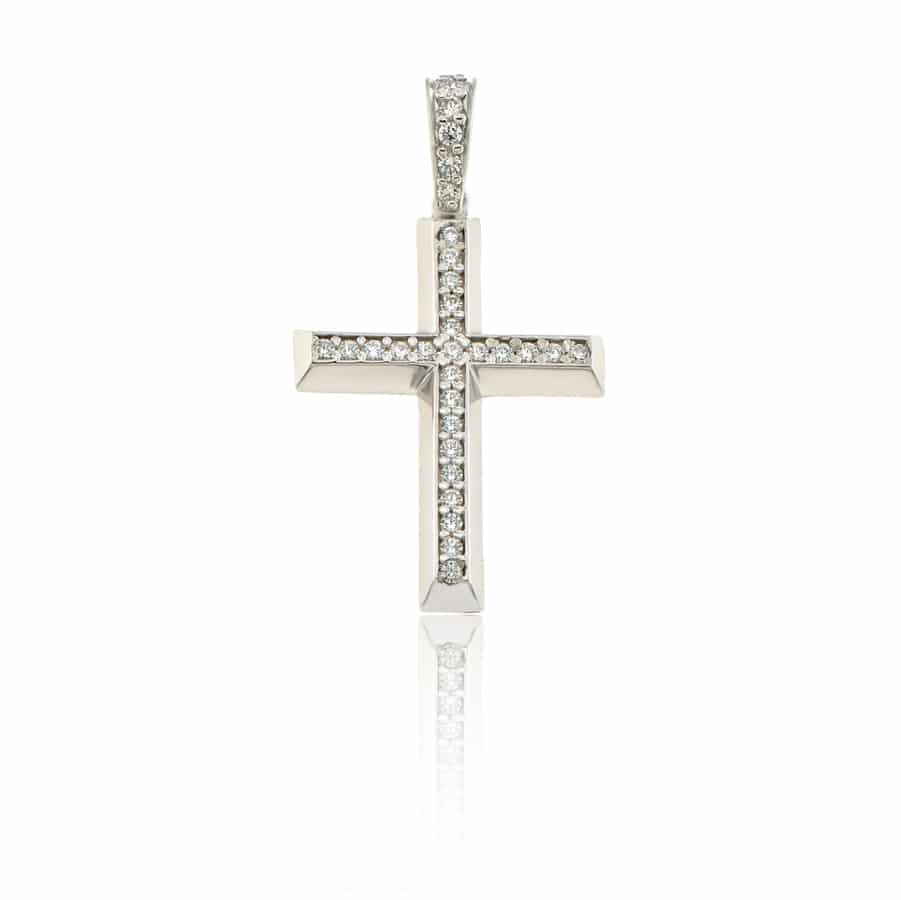 Σταυρός FaCad’oro κατασκευσμένος από λευκό χρυσό 14 καρατίων βάρους τριών γραμμάριων διακοσμημένος με ζιργκον