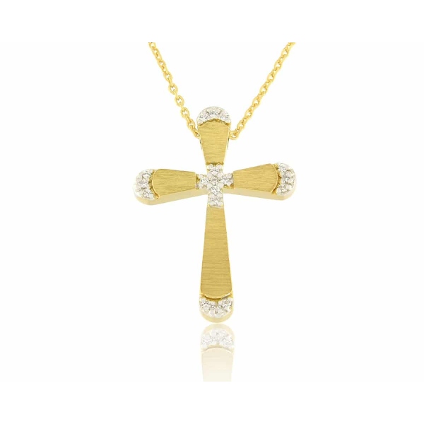 Σταυρός FaCad’oro κατασκευασμένος από χρυσό 18 καρατίων, διακοσμημένος με διαμαντάκι 0,009Ct .Συνοδεύετε από χρυσή αλυσίδα 18 καρατίων επίσης. Συνολικό βάρος Αλυσίδα και σταυρός 4,3 γραμμάρια. Παραγγελία κατόπιν τηλεφωνικής συνεννόησης .