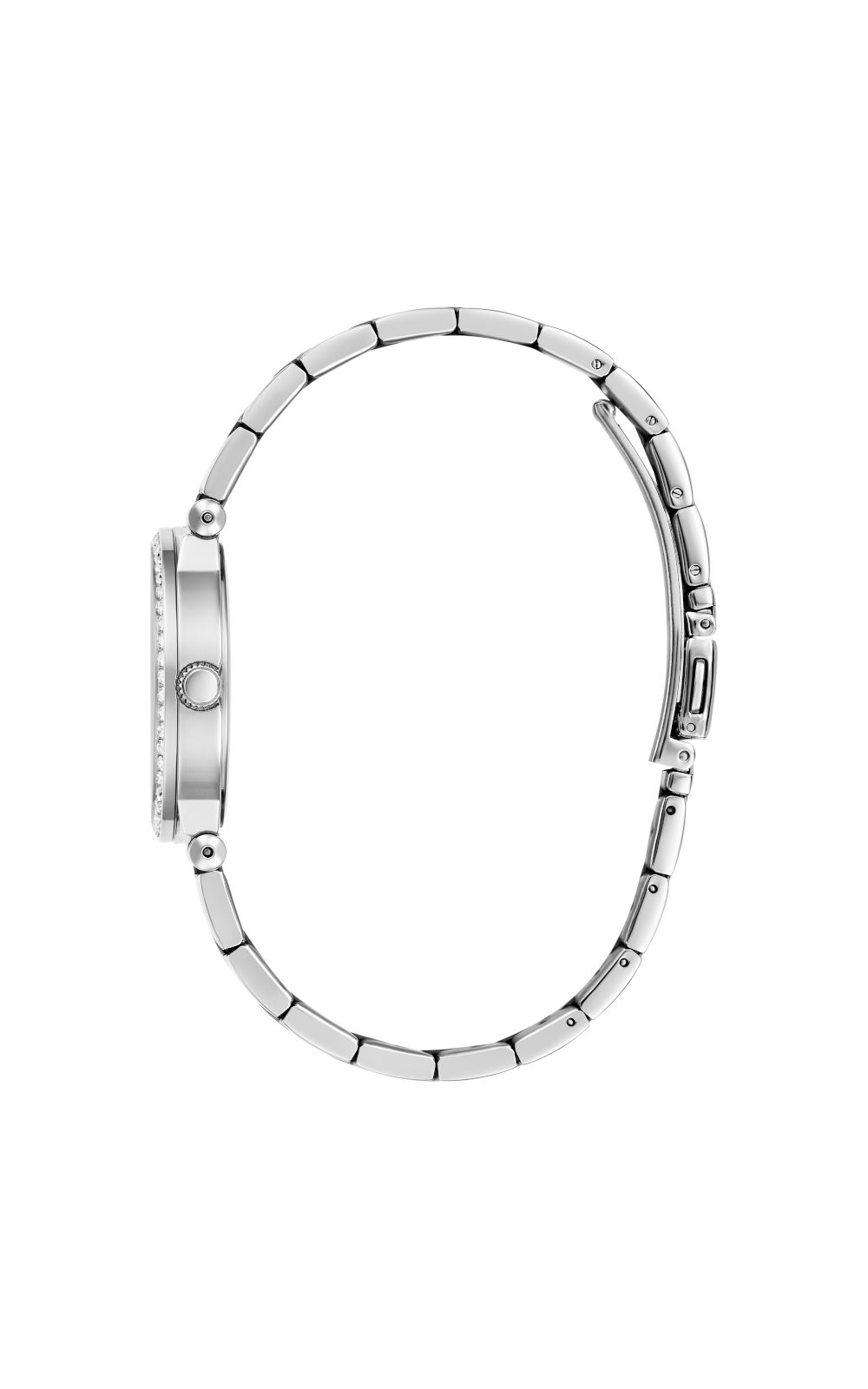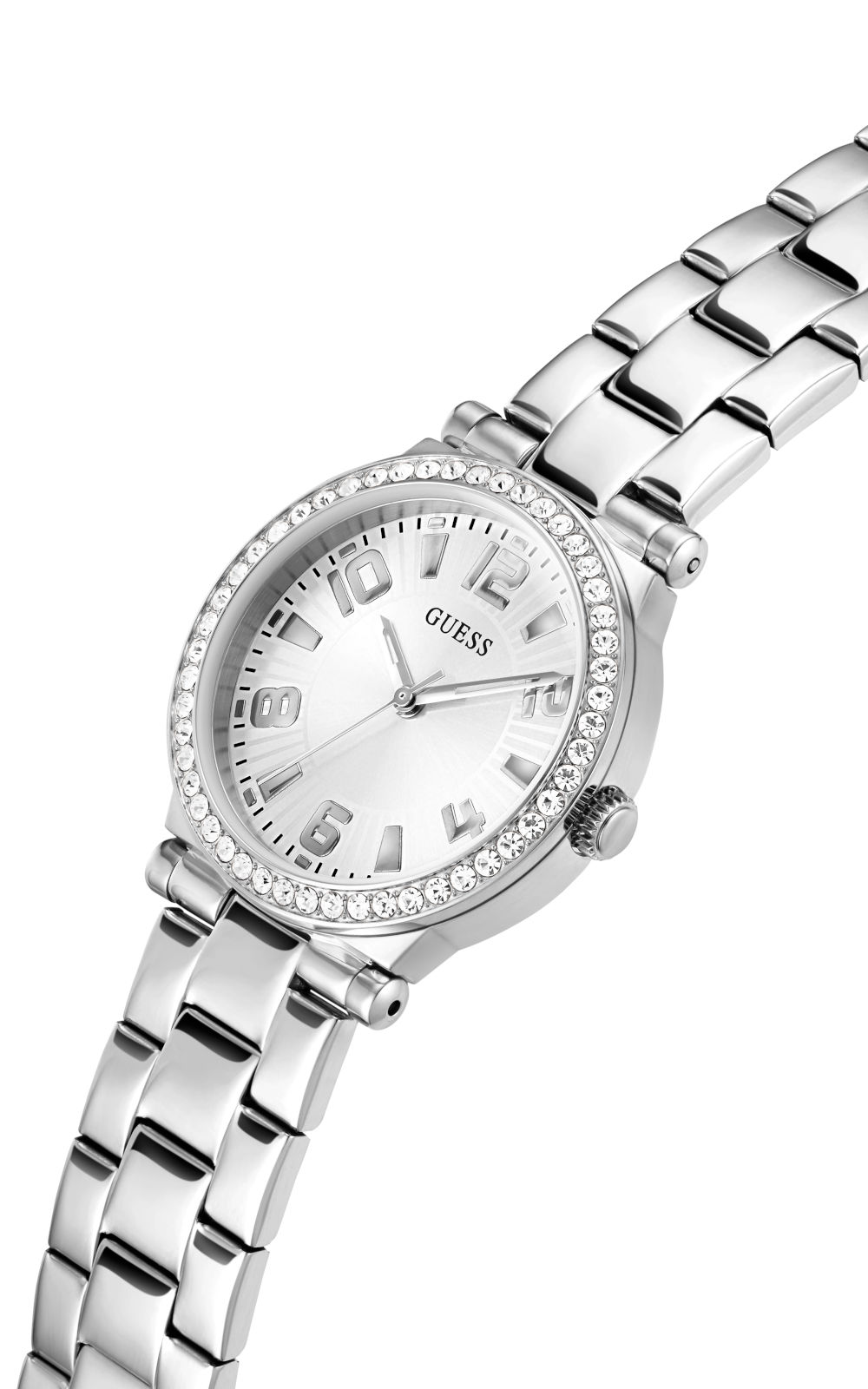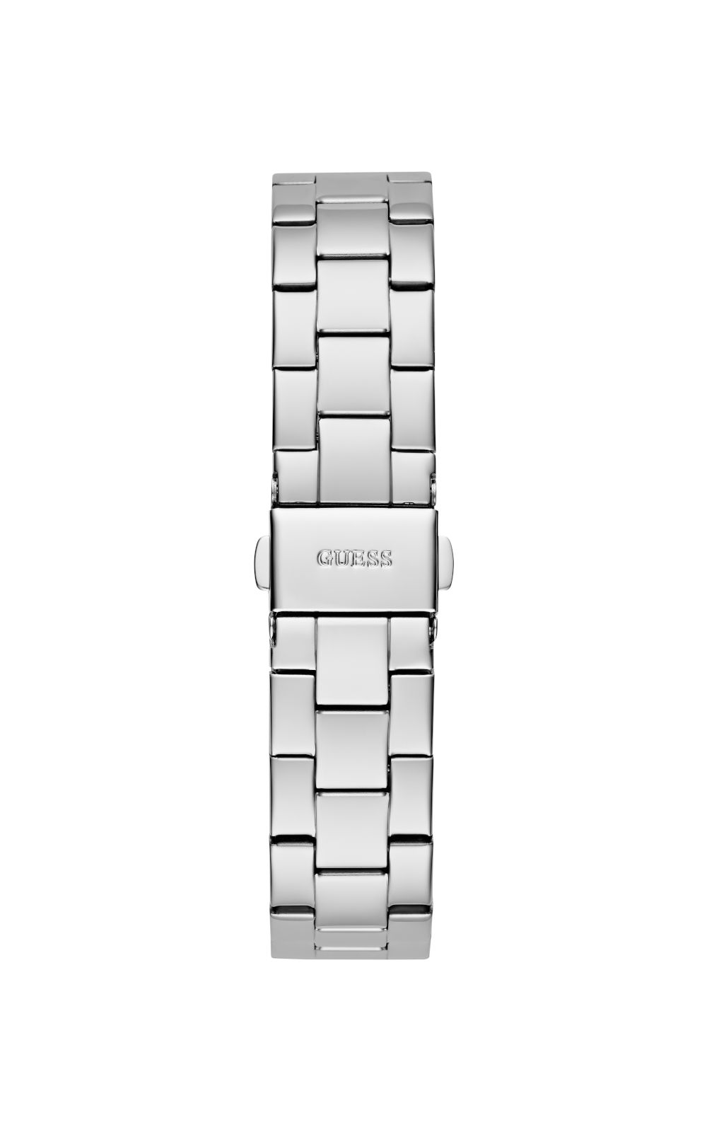 Γυναικείο ρολόι GUESS FAWN GW0686L1 διαμέτρου 32mm, με μηχανισμό QUARTZ ακριβείας, ασημένιο καντράν, κάσα και μπρασελέ από ανοξείδωτο ατσάλι.