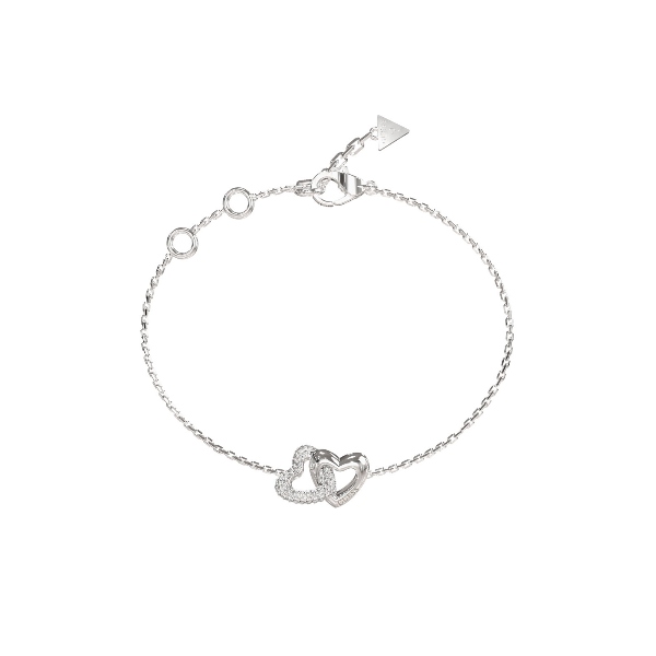 Buy It NowΓυναικείο βραχιόλι GUESS STEEL BELOVED JUBB06014JWRHL ασημένιου χρώματος με σχέδιο καρδιές με πέτρες και λογότυπο(21cm).