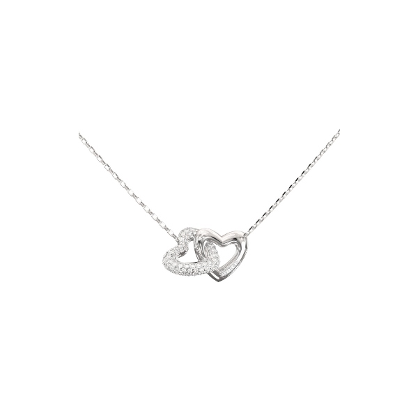 Γυναικείο κολιέ GUESS STEEL BELOVED JUBN06013JWRHT/U ασημένιο με δύο καρδιές με πέτρες και λογότυπο(40,64-45,72cm).