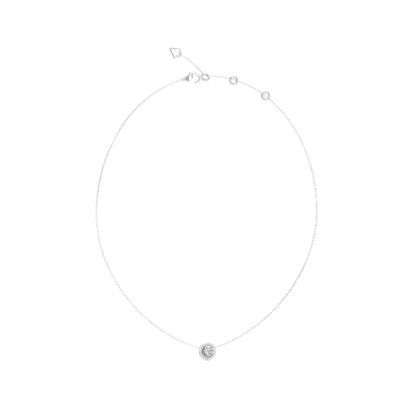 Γυναικείο κολιέ GUESS STEEL G CRYSTAL JUBN05446JWRHT/U ασημένιο με λογότυπο με πέτρες(40,64-45,72cm).