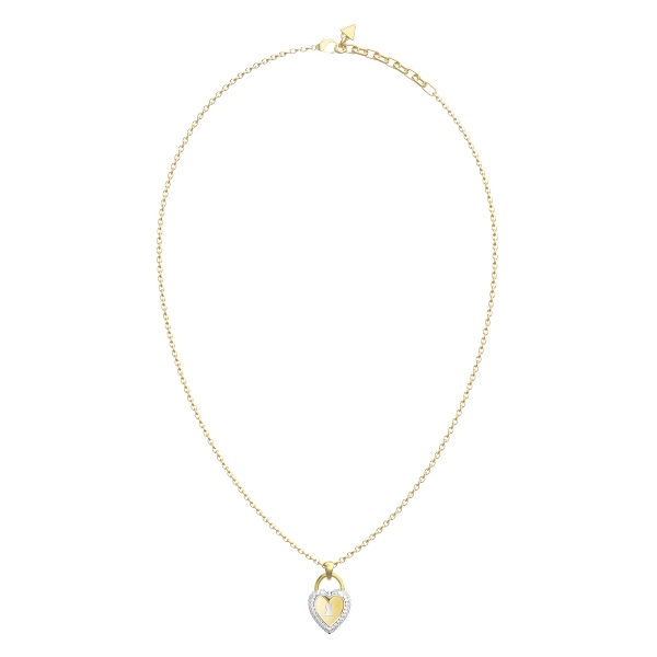 Buy It NowΓυναικείο κολιέ GUESS STEEL LOVE BITES JUBN06060JWYGRHT/U χρυσό, με σχέδιο δίχρωμη καρδιά με πέτρες και λογότυπο(43,18-53,34cm).