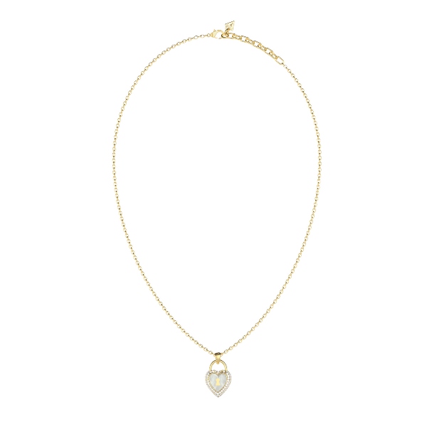 Buy It NowΓυναικείο κολιέ GUESS STEEL LOVE BITES JUBN06063JWYGT/U χρυσό, με σχέδιο καρδιά με πέτρες και λογότυπο(43,18-53,34cm).