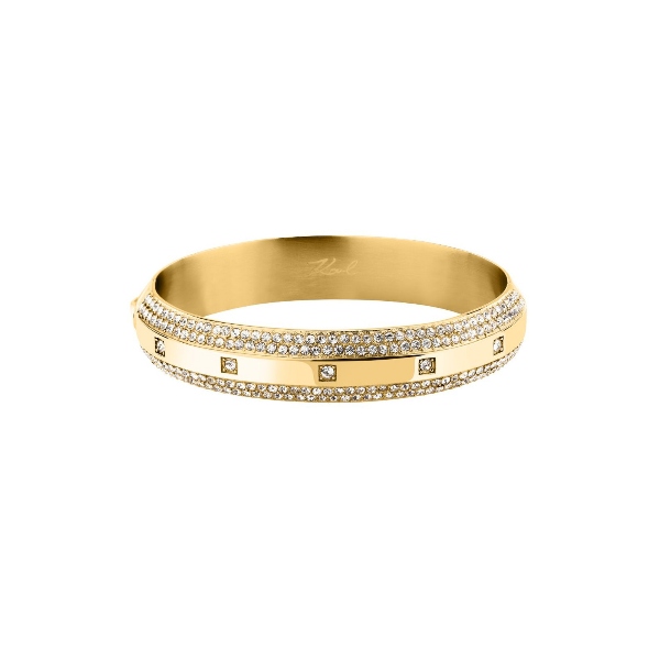 Γυναικείο βραχιόλι KARL LAGERFELD BOND PAVE KLBJY03 χρυσού χρώματος με πέτρες και λογότυπο(6x5cm).