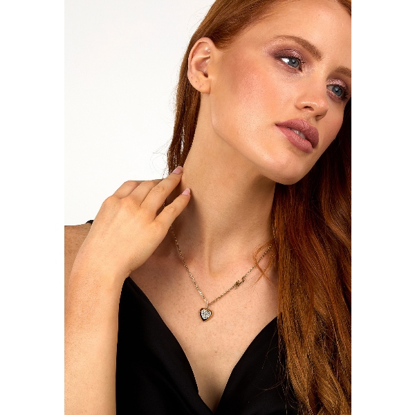 Γυναικείο κολιέ KARL LAGERFELD CHARMS KLAYD03 χρυσού χρώματος με σχέδιο καρδιά με πέτρες(40+5cm).