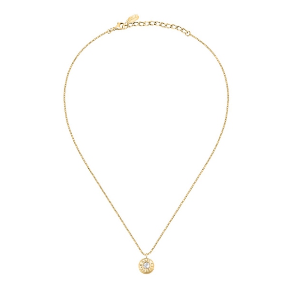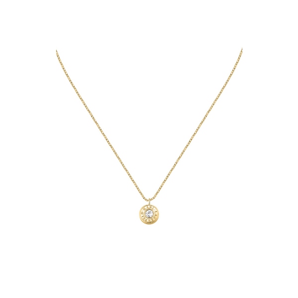 Γυναικείο κολιέ KARL LAGERFELD χρυσού χρώματος με πέτρα. Είναι κατασκευασμένο από ανοξείδωτο ατσάλι και είναι διακοσμημένο με σχέδιο με άσπρη πέτρα και λογότυπο της εταιρείας(40+5cm).