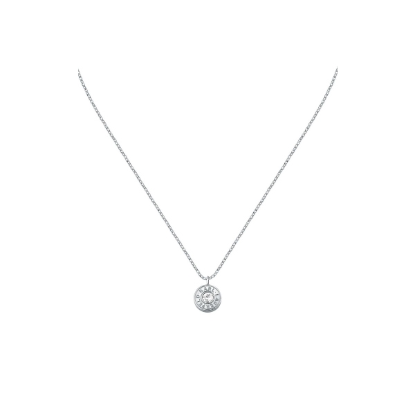 Γυναικείο κολιέ KARL LAGERFELD ασημένιου χρώματος με πέτρα. Είναι κατασκευασμένο από ανοξείδωτο ατσάλι και είναι διακοσμημένο με σχέδιο με άσπρη πέτρα και λογότυπο της εταιρείας(40+5cm).