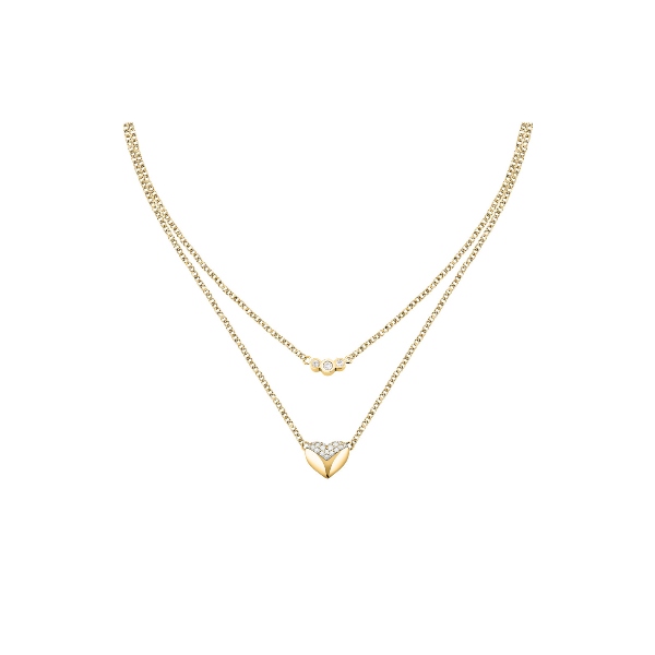 Γυναικείο κολιέ KARL LAGERFELD PAVE AMOUR KLBJW02 χρυσού χρώματος με σχέδιο διπλή αλυσίδα, με καρδιά με πέτρες και λογότυπο(38/40+5cm).