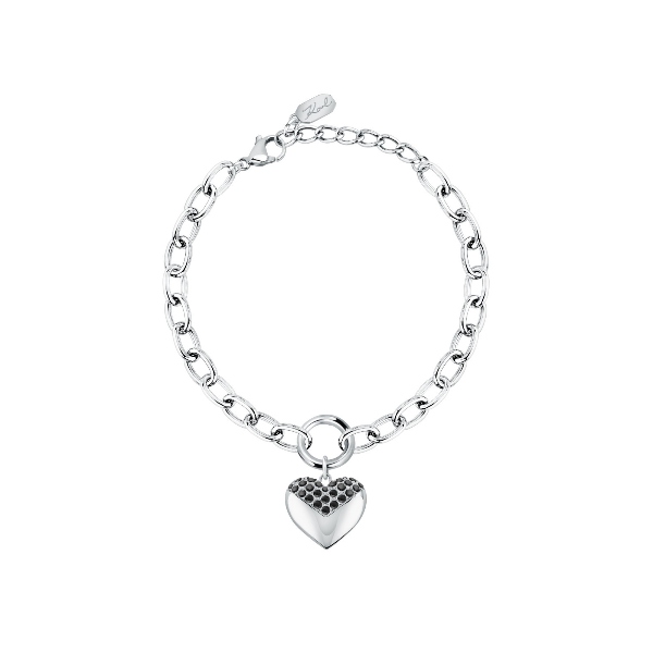 Γυναικείο βραχιόλι KARL LAGERFELD ασημένιου χρώματος. Είναι κατασκευασμένο από ανοξείδωτο ατσάλι και είναι διακοσμημένο με καρδιά με πέτρες(17+3cm).