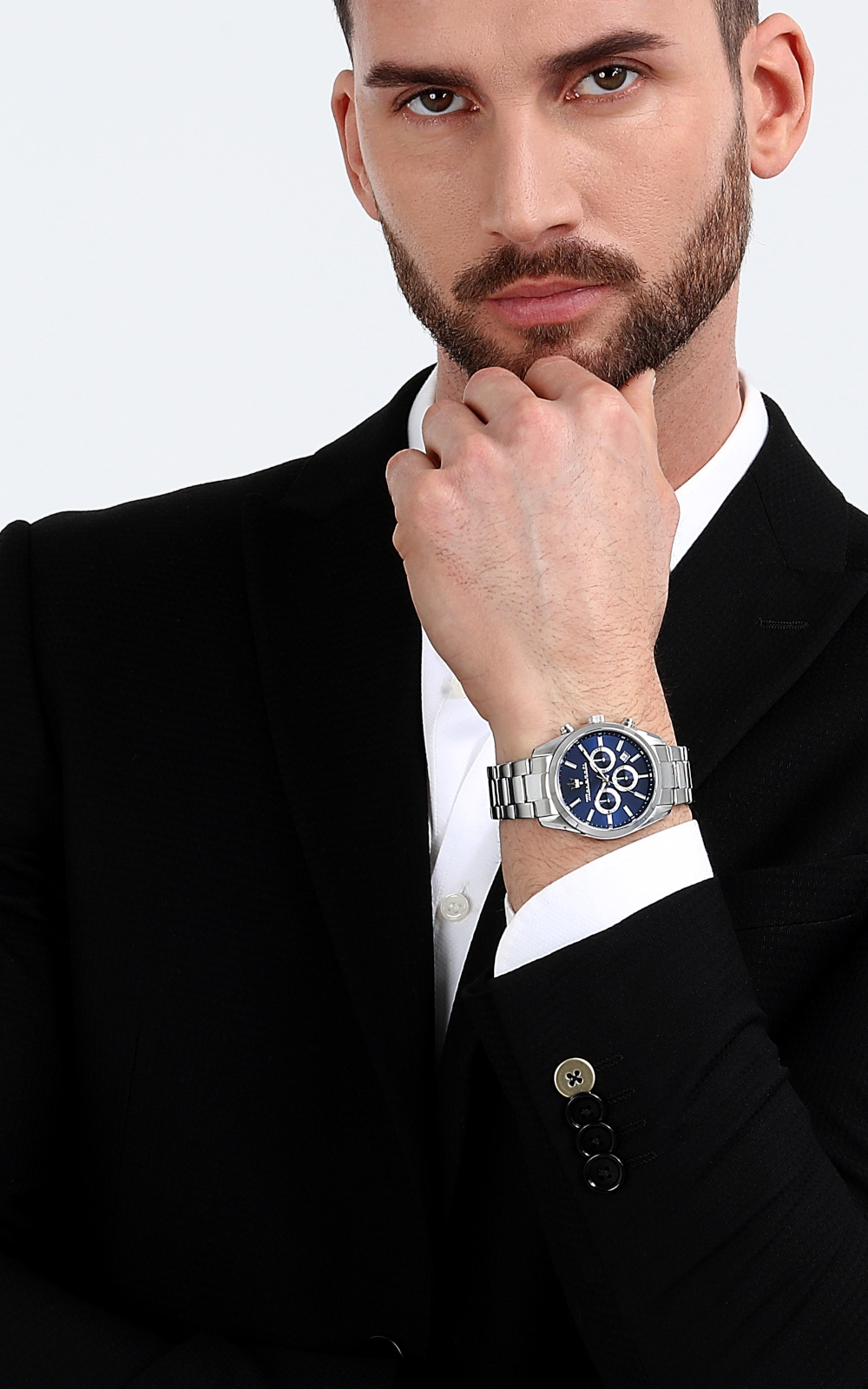 Ανδρικό ρολόι διαμέτρου 43mm με μηχανισμό Quartz Multifuction ακριβείας. Έχει μπλε καντράν με ασημένιους δείκτες και λευκές λεπτομέρειες και ένδειξη ημερομηνίας. Η κάσα του είναι από ανοξείδωτο ατσάλι με κρύσταλλο από ορυκτό κρύσταλλο ειδικής σκλήρυνσης. Έχει μπρασελέ από ανοξείδωτο ατσάλι και κούμπωμα ασφαλείας. Είναι αδιάβροχο (5 ATM).