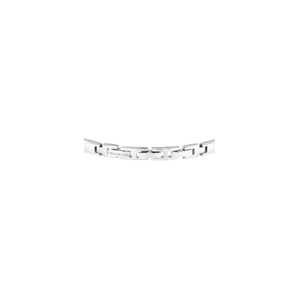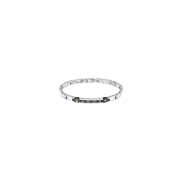 Ανδρικό βραχιόλι MASERATI CERAMIC JM224ATZ35 από ανοξείδωτο ατσάλι με κεραμικά στοιχεία, ασημένιου και μαύρου χρώματος με χρυσή τρίαινα και λογότυπο(18,5+3cm).