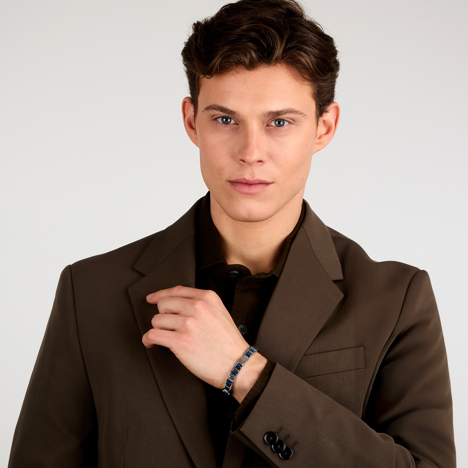 Ανδρικό βραχιόλι MASERATI CERAMIC JM225ATZ55 από ανοξείδωτο ατσάλι με κεραμικά στοιχεία, μπλε και ασημένιου χρώματος με ροζ χρυσή τρίαινα και λογότυπο(18+3,5cm).