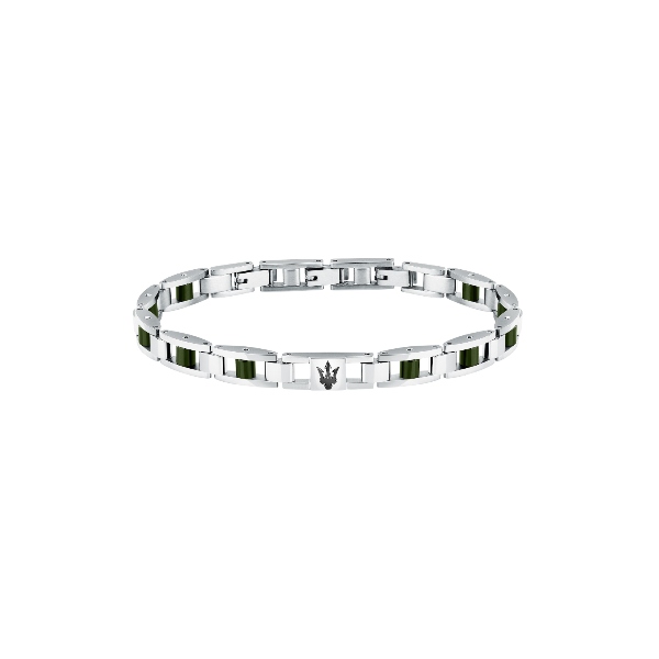 Ανδρικό βραχιόλι MASERATI CERAMIC JM225ATZ60 από ανοξείδωτο ατσάλι με κεραμικά στοιχεία,πράσινου και ασημένιου χρώματος με γκρι τρίαινα και λογότυπο(18+3,5cm).