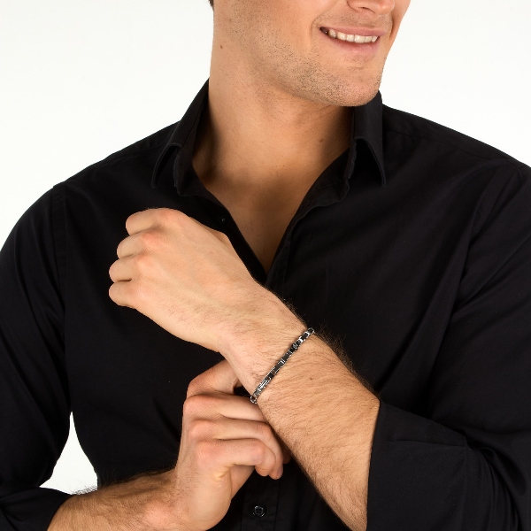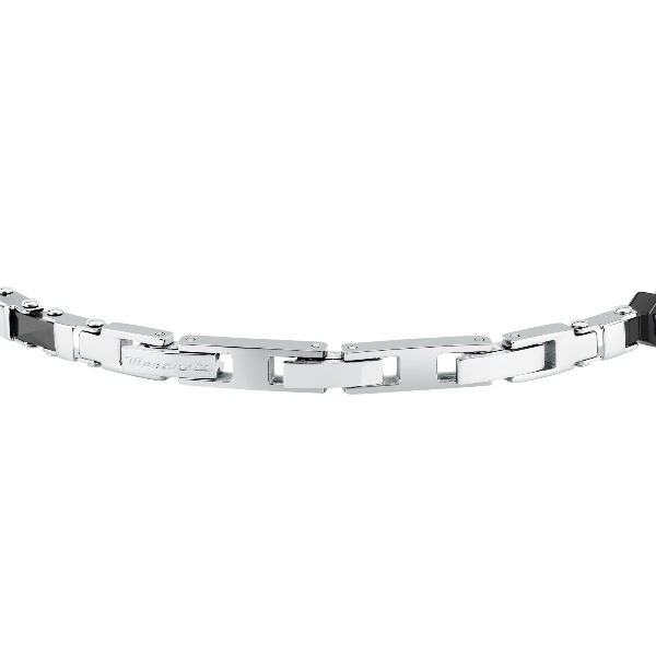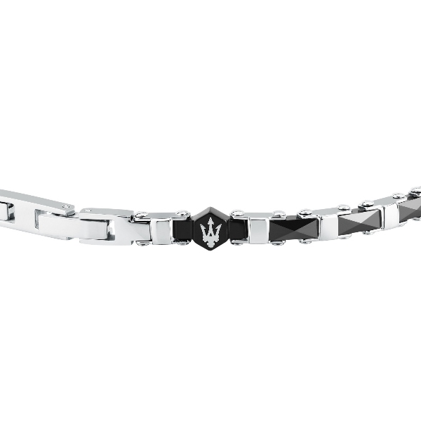 Ανδρικό βραχιόλι MASERATI CERAMIC JM226ATZ83 από ανοξείδωτο ατσάλι,ασημένιου και μαύρου χρώματος με τρίαινα(18+3,5cm).