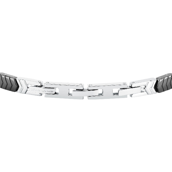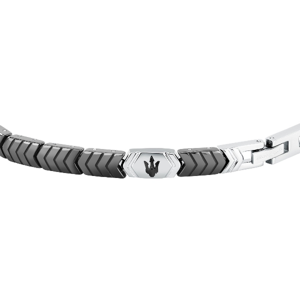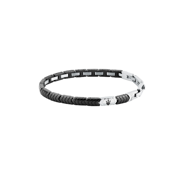 Ανδρικό βραχιόλι MASERATI CERAMIC JM226ATZ86 από ανοξείδωτο ατσάλι,ασημένιου και μαύρου χρώματος με τρίαινα(18+3,5cm).