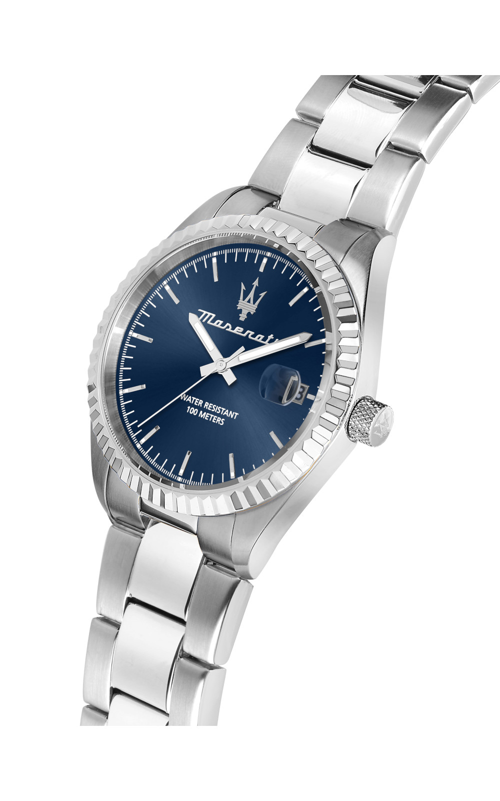 Αντρικό ρολόι διαμέτρου 43mm με μηχανισμό QUARTZ ακριβείας. Έχει μπλε καντράν με ασημένιους δείκτες, λεπτομέρειες και ένδειξη ημερομηνίας. Η κάσα του είναι από ανοξείδωτο ατσάλι με κρύσταλλο από ορυκτό κρύσταλλο ειδικής σκλήρυνσης. Έχει μπρασελέ από ανοξείδωτο ατσάλι και κούμπωμα ασφαλείας. Είναι αδιάβροχο (10 ΑΤΜ).