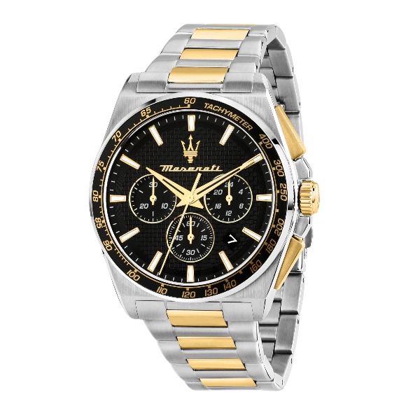 Ανδρικό ρολόι Quartz χρονογράφος ακριβείας διαμέτρου 43mm. Έχει μαύρο καντράν με χρυσούς δείκτες, και λεπτομέρειες. Η κάσα του είναι από ανοξείδωτο ατσάλι με κρύσταλλο από ορυκτό κρύσταλλο. Έχει μπρασελέ από ανοξείδωτο ατσάλι και κούμπωμα ασφαλείας. Είναι αδιάβροχο (10 ATM).
