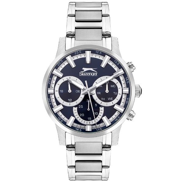 Εντυπώσιακο ρολόι Slazenger διαμέτρου 44mm σε Μπλέ χρώμα καντράν και Ασημί Μπρασελέ. Αδιάβροχο μέχρι 5 ATM (50m)-Πλύσιμο Χεριών