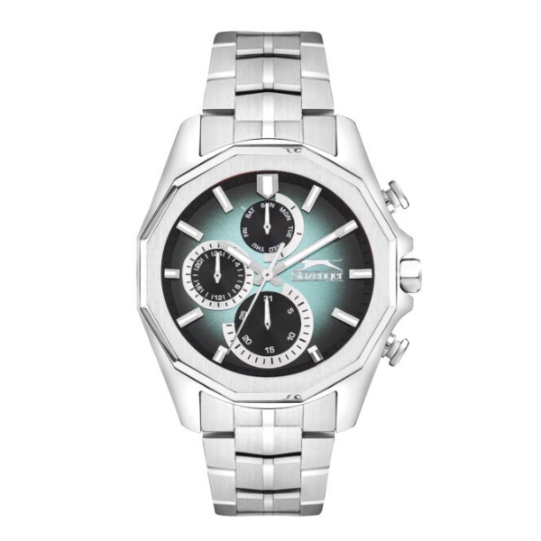 Εντυπώσιακο ρολόι Slazenger διαμέτρου 48mm σε Πράσινο χρώμα καντράν και Ασημί Μπρασελέ. Αδιάβροχο μέχρι 5 ATM (50m)-Πλύσιμο Χεριών